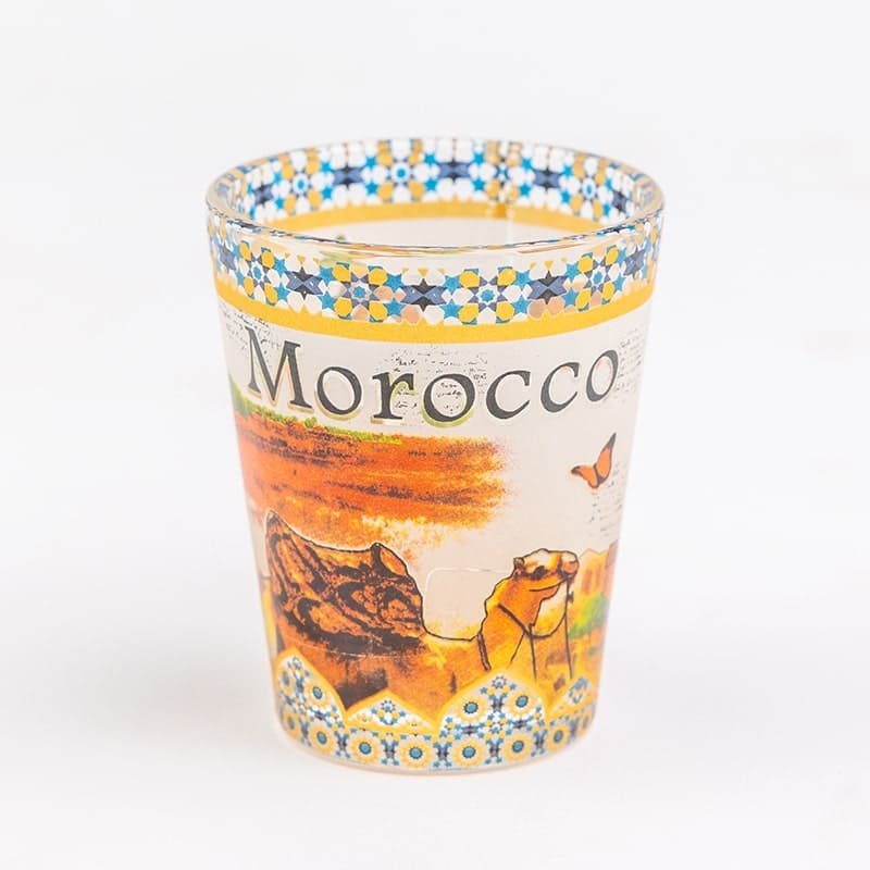 Chaque mini verre Morocco est réalisé avec soin pour garantir la qualité du verre et la finesse de la décoration. Les motifs représentent les éléments emblématiques du patrimoine marocain, comme les mosaïques, les arches des riads ou encore les étals d’épices multicolores. La présence du chameau sur certains modèles rend hommage aux caravanes et aux routes ancestrales du désert, symboles de l’histoire et de la culture du pays. Ainsi, chaque verre raconte une histoire et devient un petit trésor artisanal.